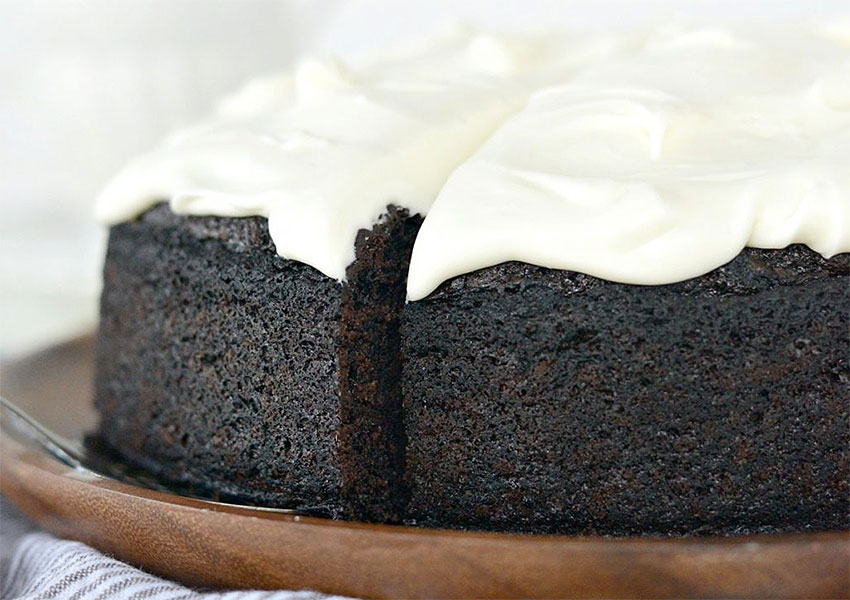 El color resultante de la torta es un negro intenso que, al ser adornada con una deliciosa crema blanca, recuerda un bol de cerveza negra bien fría.
